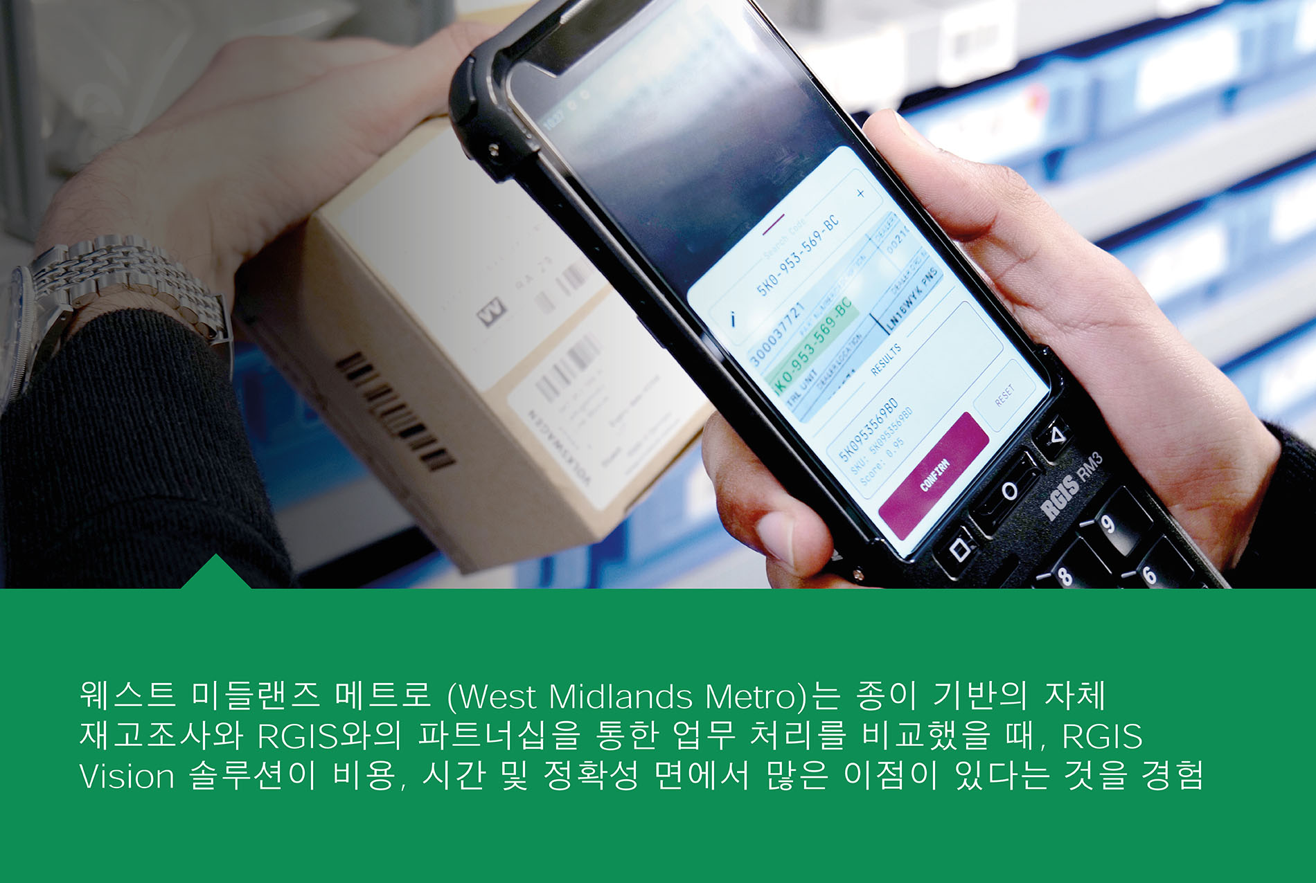 웨스트 미들랜즈 메트로(West Midlands Metro)는 RGIS와 협력하여 RGIS 비전을 사용한 창고 제품 코드 재고 프로젝트를 완료했으며, RGIS는다음을 제공했습니다: