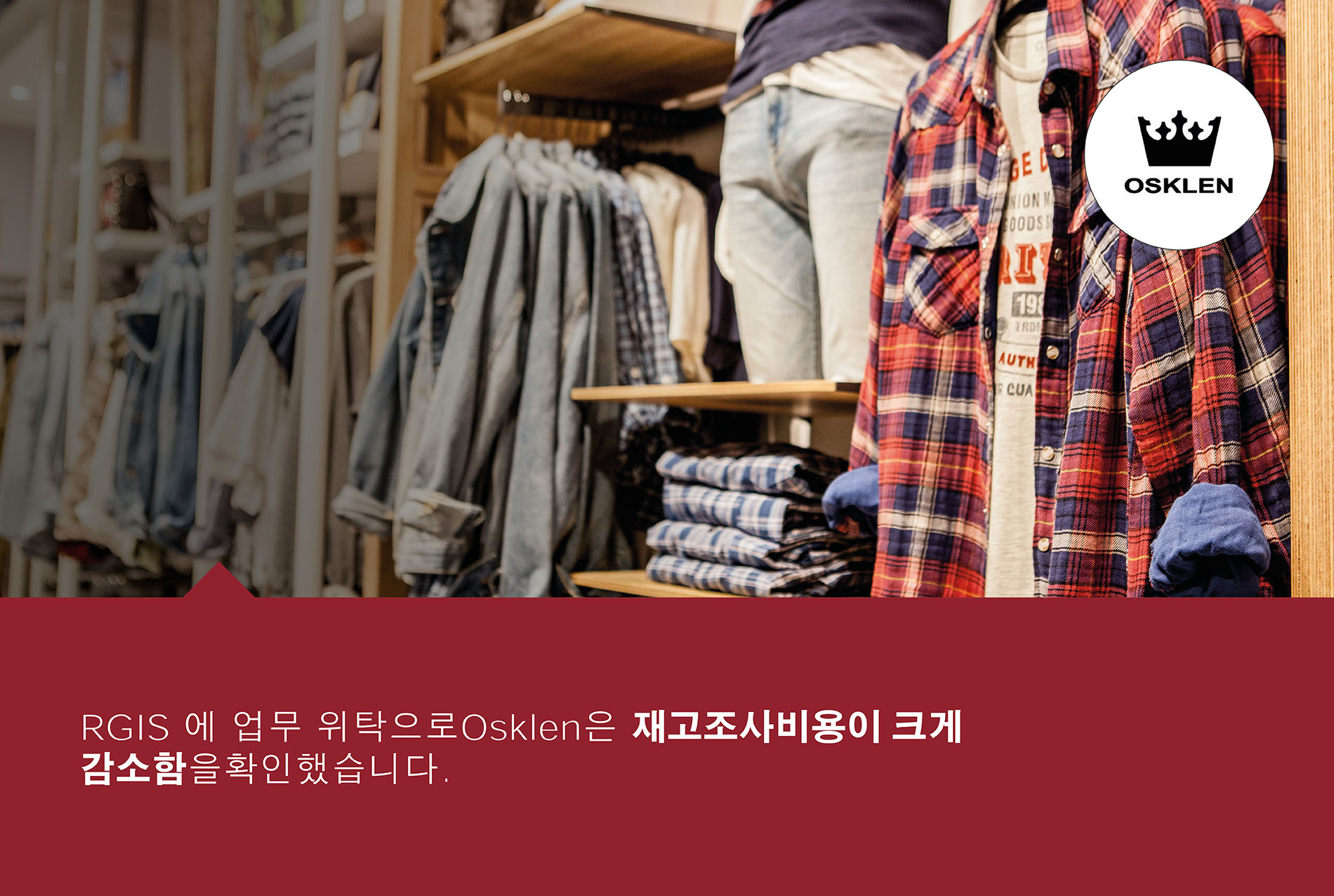 Osklen은 RGIS와 파트너쉽을 통하여 매장과 창고의 전체 재고 수량 확인 프로젝트를 완료하였고, RGIS는 다음을 제공하였습니다: